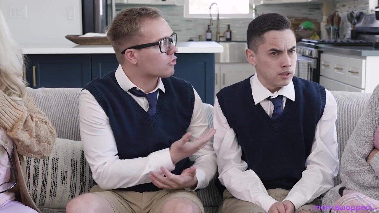 Katie Morgan and Shay Sights are both active in their church. Today they're going through their sons' old clothes to donate to the church yard sale. Everything is going swimmingly until Katie finds a dirty magazine under her son, Joshua Lewis's bed. The girls decide their songs are in moral danger and that they'll have to confront them.Calling Joshua and Shay's son Juan Loco together, the moms confront their kids. Joshua and Juan try to pin the blame on each other. Eventually it becomes clear that they have to purge one another's sons of their sinful thoughts. The only way to achieve that is to make them cum. Shay takes on Joshua's hardon, while Katie opens wide to take Juan in. A blowjob isn't enough to make either boy nut, so the ladies move on to more drastic measures.Having the boys sit side by side, the girls peel off their clothes. Katie mounts Juan in cowgirl while Shay gives Joshua the same treatment. When that doesn't work, the moms turn around and give it to each other's sons in reverse cowgirl. Some might say that Katie and Shay are having an outright good time as Katie gets her pussy pounded in doggy and Katie enjoys Joshua's dick while she's on her back. The ladies switch positions so that Juan gets to do Katie on her back while Shay enjoys some doggy style. When the boys finally pull out to blow their loads, their moms are pleased that they have helped purge those terribly sinful thoughts.