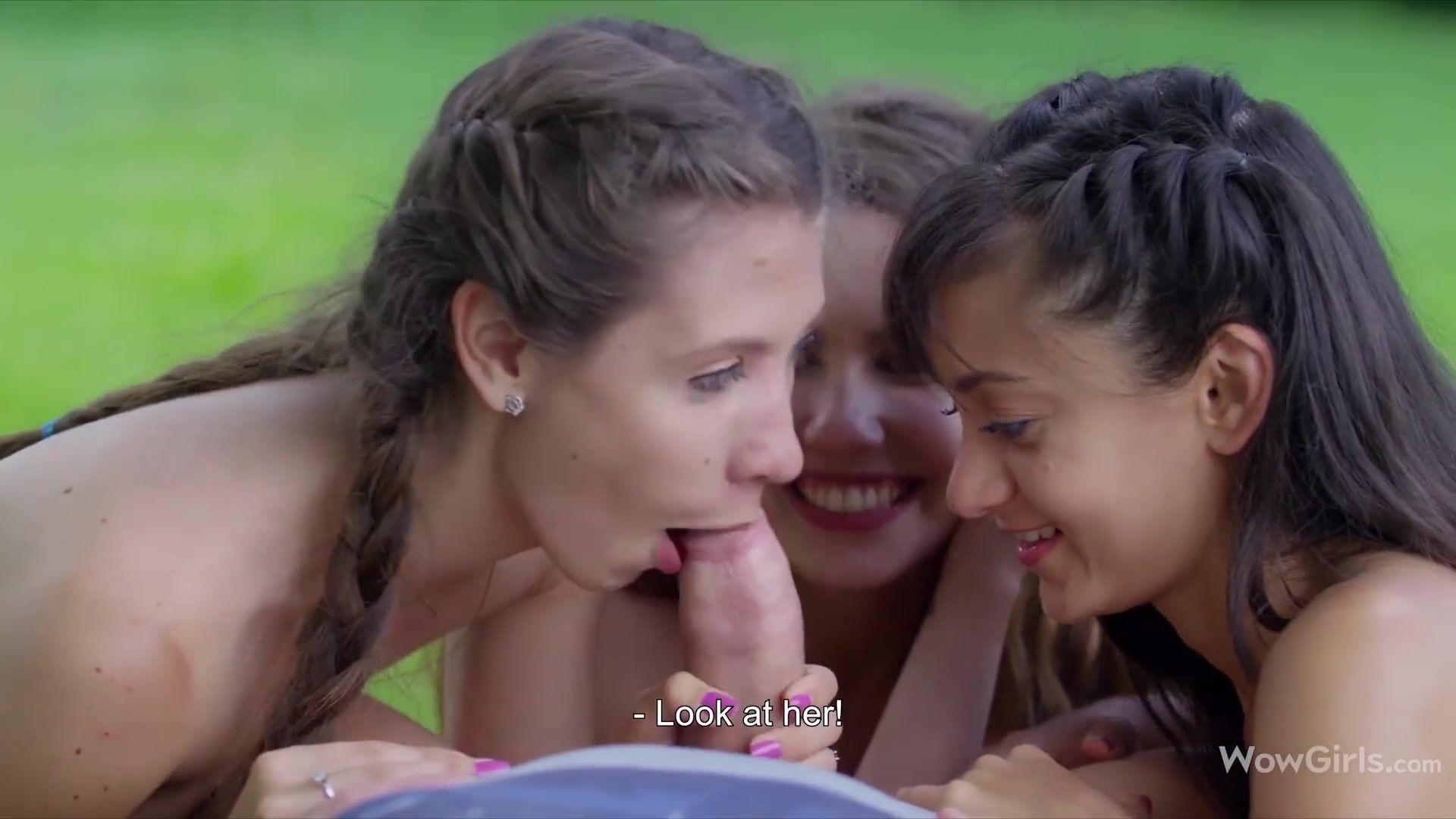 Three cuties Shrima Malati, Stefanie Moon and Elle Rose fucking a stranger ou...