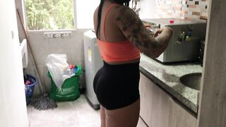 RECORDING MY STEPSISTER'S ASS IN TIGHT SHORTS WITHOUT HER REALIZING IT (DRESSING, BRUNETE, BIG ASS, THONG)