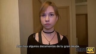 DEBT4k. Teen debtor pays off debts using cute mouth and vagina