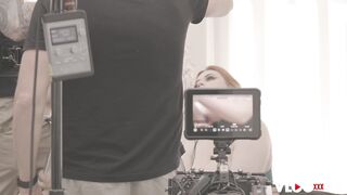 Description: The redhead hottie with big tits and round ass finishes her photo shoot and interview before her scene.